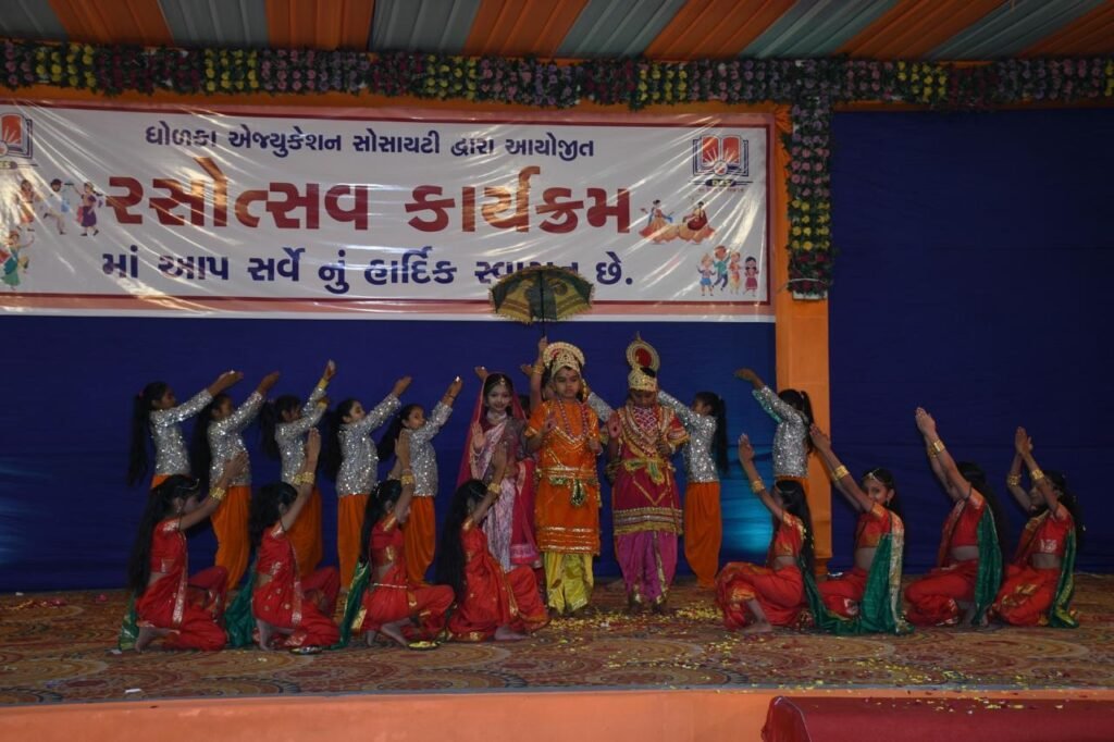 ધોળકા એજ્યુકેશન સોસાયટી દ્વારા તા – 16/02/2026 ને સોમવારના રોજ સોસાયટી સંચાલિત તમામ શૈક્ષણિક સંસ્થાઓનો સામૂહિક સાંસ્કૃતિક કાર્યક્રમ ” રાસોત્સવ ૨૦૨૬નું ભવ્ય આયોજન કરવામાં આવ્યું, વિદ્યાર્થીઓ નો સર્વાંગી વિકાસ થાય તથા સાંસ્કૃતિક ક્ષેત્રે અવનવા શિખરો સર કરી શકે તે હેતુથી આ કાર્યક્રમ યોજવામાં આવ્યો હતો, આ કાર્યક્રમમાં આતિથી તરીકે શ્રી દિનેશભાઈ ડાંગા- (CMD શ્રી હંસ એલોય લી.) તથા શ્રી કિરણભાઈ પટેલ (CEO – જગદંબા પોલિમર પ્રા. લી.) ઉપસ્થિત રહી કાર્યક્રમને શોભવ્યો, કાર્યક્રમ માં ધોળકા એજ્યુકેશન સોસાયટી ના પ્રમુખશ્રી મુકેશભાઈ પટેલ સાહેબ , ઉપપ્રમુખ શ્રી ઘનશ્યામસિંહ ચાવડા સાહેબ, માનદ મંત્રી શ્રી જૈનિકભાઈ પટેલ સાહેબ, સહ માનદ મંત્રી શ્રી જયેશભાઈ ત્રિવેદી સાહેબ, કારોબારી સભ્યશ્રી