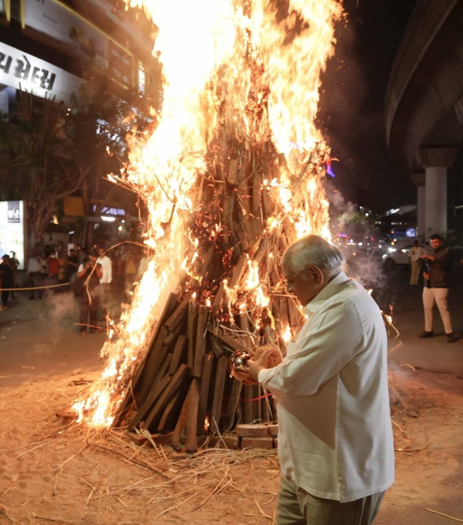 આજે ફાગણી પૂનમ – હોળીના પાવન અવસરે મેમનગર વિસ્તારમાં આયોજિત હોલિકાદહન કાર્યક્રમમાં પક્ષના ઊર્જાવાન કાર્યકર્તાઓ અને સ્થાનિક રહેશોની સાથે વૈદિક હોળી પ્રાગટ્ય અવસરે સહભાગી થવાનો અવસર આધ્યાત્મિક ઊર્જાની અનુભૂતિ આપનાર બની રહ્યો. આપણી સંસ્કૃતિમાં હોલિકાદહનનું આગવું મહત્ત્વ છે. નકારાત્મકતાના નાશ અને સકારાત્મકતા ઊર્જાના પ્રસાર માટે સૌ એક થઈને પ્રાર્થના કરતા હોય છે. જીવનમાં રાગ-દ્વેષ